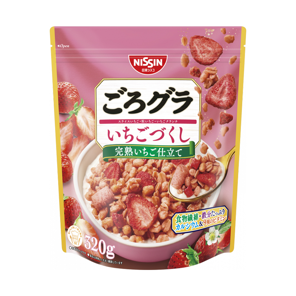 Nissin Strawberry Cereal — Sweet, Tangy, and Crunchy Japanese Nissin Strawberry Cereal, blended with real strawberry pieces for a sweet and tangy flavour with a crisp texture, perfect with milk or as a snack on its own.