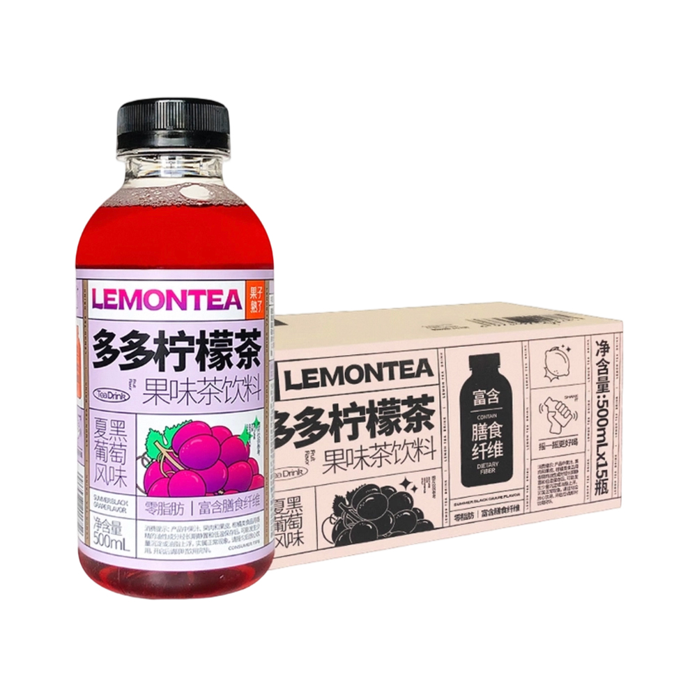 Grape lemon tea with double fruity aroma, a whole box of ice-cold fruit ripe lemon tea with grape flavor, juicy grapes and refreshing lemon, 500ml 15 bottles a box, the first choice for summer drinking.