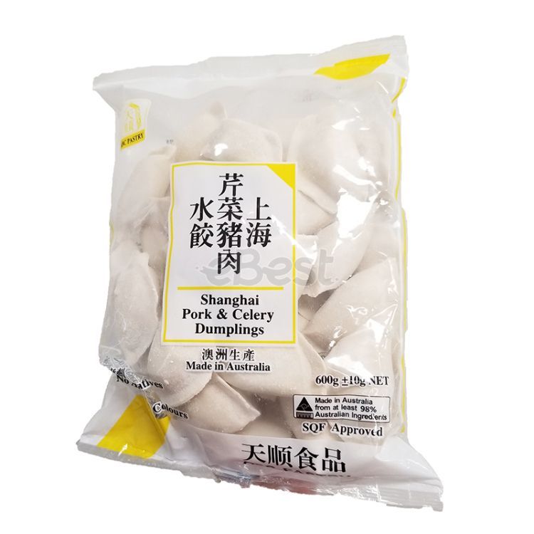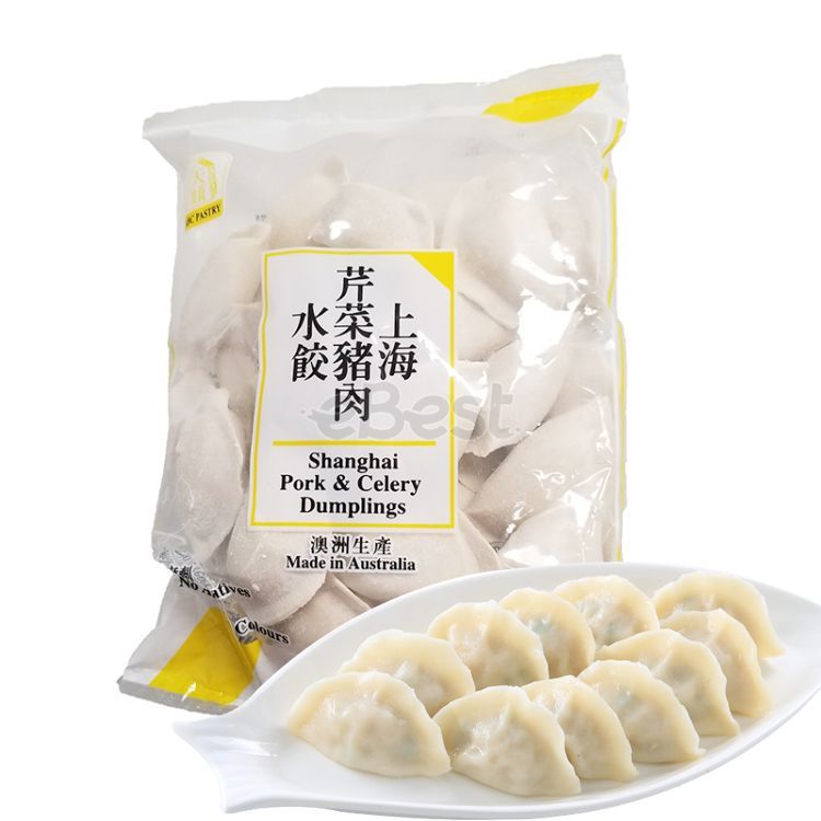 ABC Pastry Shanghai Pork & Celery Dumplings are a type of Chinese dumpling that features a savory filling made with ground pork and fresh celery. The filling is seasoned with a blend of traditional Chinese spices and seasonings to create a rich and flavorful taste.
