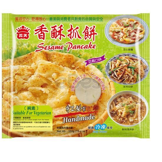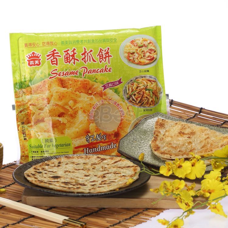 I Mei Crispy Sesame Pancake is a popular Taiwanese snack known for its delightful texture and rich sesame flavor. Made by I Mei, a well-known food brand, these pancakes are made from a crispy and flaky dough that is layered and coated with sesame seeds. When cooked, the pancakes turn golden brown and have a crispy exterior with a tender and aromatic sesame filling. I Mei Crispy Sesame Pancakes are conveniently frozen and delivered using a cold chain delivery system, ensuring their freshness and quality. They can be enjoyed as a standalone snack or served with savory or sweet fillings for a satisfying treat.