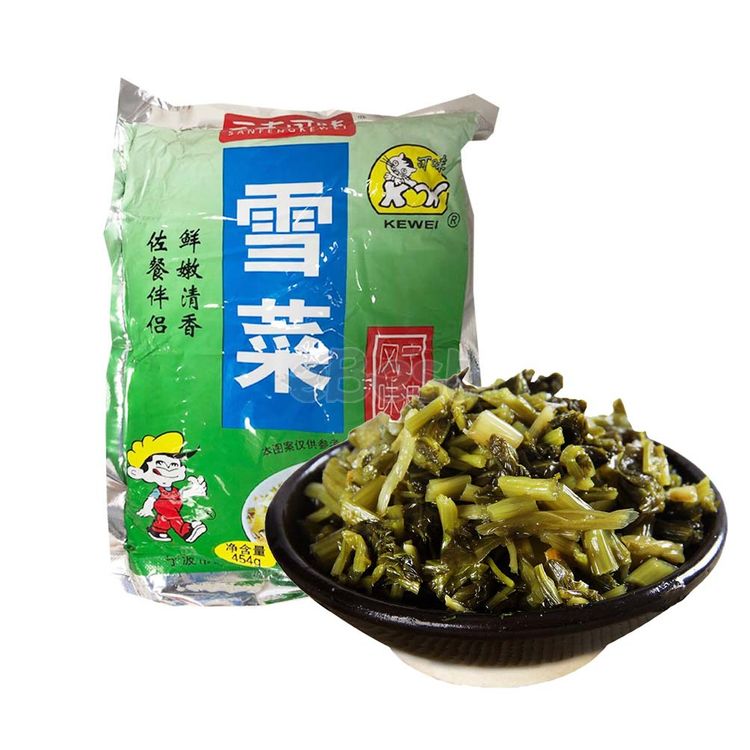 Fresh pickled vegetables are emerald green in color and have a slightly astringent and spicy taste. They are often used to fry minced meat. This pickled cabbage is bright yellow in color, crisp and slightly sour in taste, professionally processed, delicate pickled cabbage. Variety of eating methods: serving as a partner, cooking noodles, cooking soup for seasoning, stir-frying cooking~