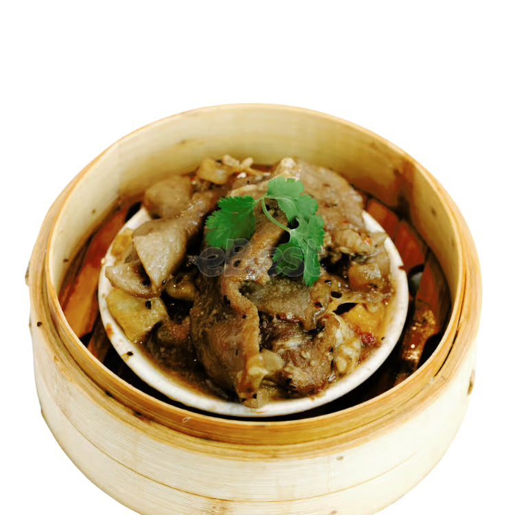 Black pepper beef short ribs are a classic Cantonese dim sum dish, known for their rich flavor and tender meat. They are steamed in boiling water for 10-15 minutes and are ready to be enjoyed.