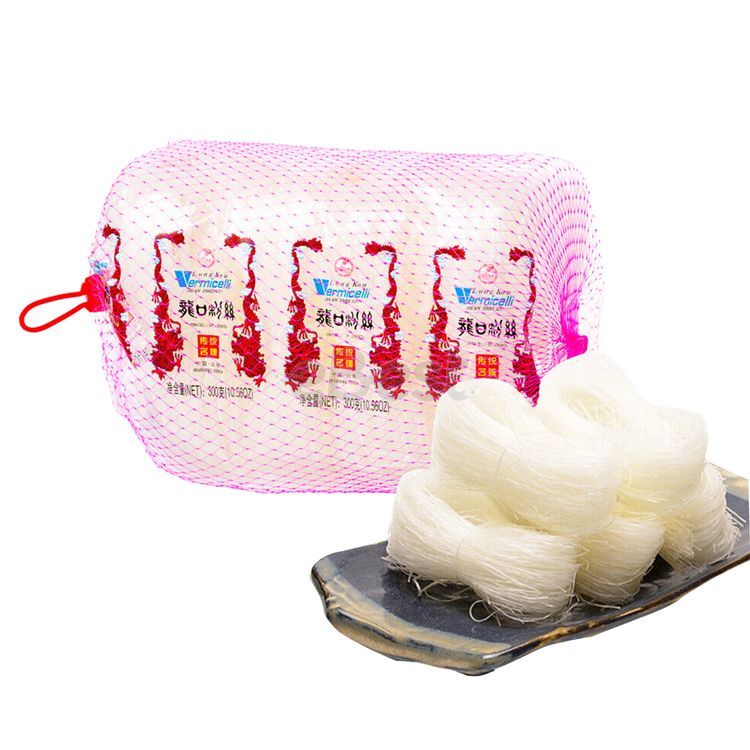 Longkou vermicelli, also known as cellophane noodles or glass noodles, is a type of transparent noodle made from mung bean starch. It is commonly used in Asian cuisine, particularly in Chinese and Southeast Asian cooking. Longkou vermicelli has a slippery and slightly chewy texture, with a neutral and slightly sweet taste. It is often used as a base for soups, stir-fries, and salads, and pairs well with a variety of other ingredients such as meats, seafood, and vegetables.