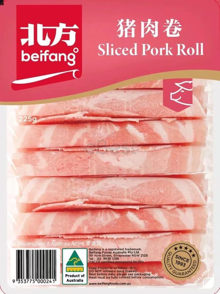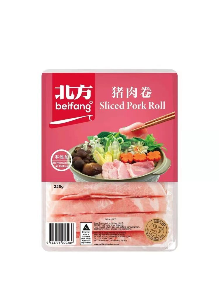 Northern pork Roll 225g pack, selected Australian local pig front leg meat, fresh raw materials, zero addition, no glue. Minus 30 degrees of freezing, minus 18 degrees of storage, the whole cold chain distribution home. Pork rolls are suitable for making malatang, mao-dish, hot pot and all kinds of family stir-fry.