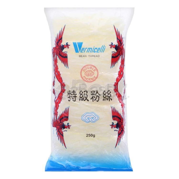 Double Phoenix Longkow Vermicelli Bean Thread, also known as glass noodles, are chewy and translucent noodles that are made with starch. It can be used for salads, stir-fries and soups by soaking the bean thread noodles in hot water until soften or to create a deep fried dish by deep-frying the bean thread noodles in oil until it expands. It is a versatile ingredient that you should always stock in your kitchen.