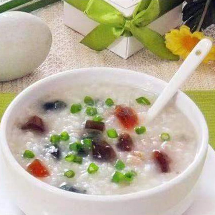 Open fire boiled white porridge with fresh preserved eggs, delicious and fragrant.