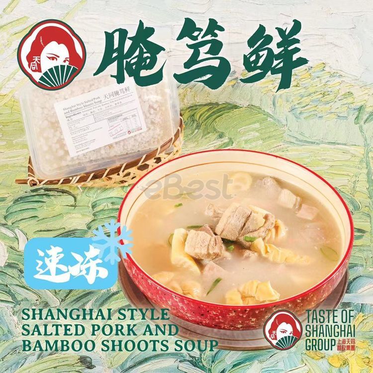 Shanghai Style Salted Pork And Bamboo Shoots Soup is a flavorful and aromatic Chinese soup. It is made by marinating various fresh ingredients such as meats, seafood, and vegetables in a flavorful broth, often infused with herbs and spices. The soup is then simmered slowly to develop rich flavors and a harmonious balance of savory and aromatic notes.