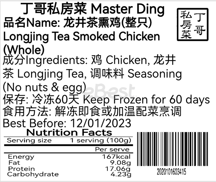 Longjing tea is smoked in the ancient method, dark yellow in color, fragrant and delicious, authentic incense, fresh and tender, with a long aftertaste. Edible Tips: Warm up and eat immediately. You can put the whole chicken into the steamer, and it can be eaten after about 10 minutes of steaming. Do not heat the smoked chicken in the microwave to avoid affecting the taste.