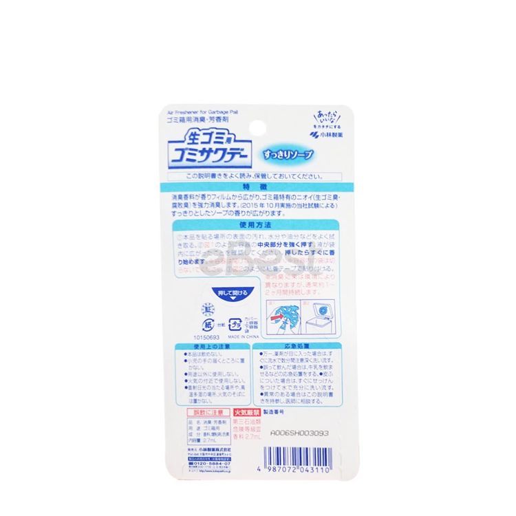 Kobayashi Pharmaceutical Sticky Kitchen Trash Can Deodorizer, Soap Scent