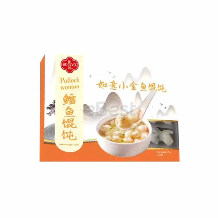 Ruyee Pollock Wonton is a type of Chinese dumpling that is typically filled with a mixture of ground pork, shrimp, and seasonings. It is made with a thin, delicate wrapper that is folded in a distinctive shape and then boiled or steamed. The filling is flavorful and juicy, with a combination of savory and slightly sweet notes.