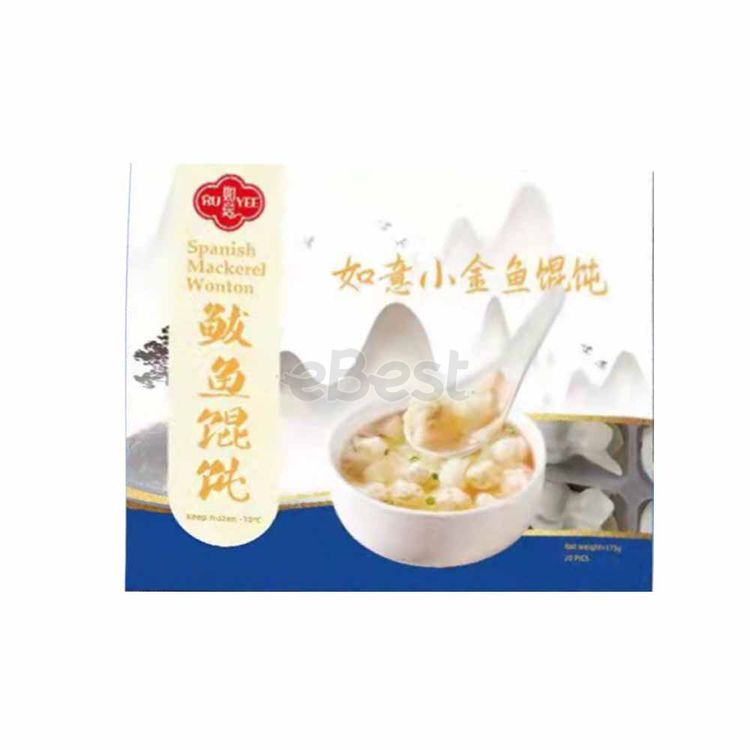 Ruyee Mackerel Wonton is a type of Chinese dumpling that is filled with mackerel fish and various seasonings. The wonton wrappers are made of flour and water, and are typically thin and delicate. The filling is made by combining minced mackerel with a blend of spices and aromatics, such as garlic, ginger, and green onions.