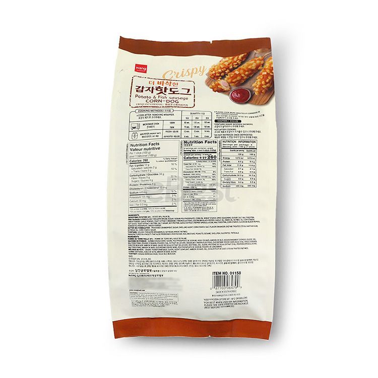 Indulge in the delectable Wang Potato & Fish Sausage Corn Dog, a delightful treat that combines the flavours of crispy potato cubes and savoury fish sausage. Each packet contains four mouthwatering corn dogs, coated with real potato cubes for an extra crunch. With a quick air fry time of just 12 minutes, you can enjoy this satisfying snack in no time. Plus, you can feel good about your choice as these corn dogs are free from artificial flavours, colours and preservatives. Treat yourself to this tasty and wholesome snack, perfect for satisfying your cravings.