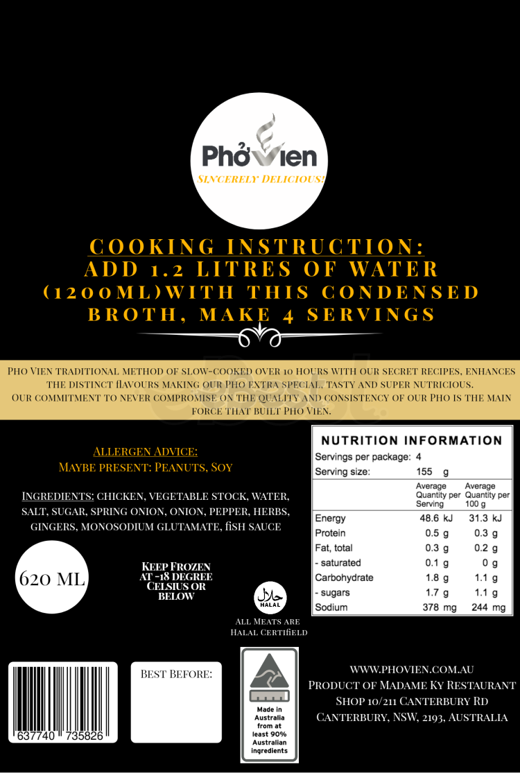 Our Frozen Pho is the first instant restaurant-quality Pho in the world, with chicken bone simmered and condensed for a minimum of 10 hours before being packed with rice noodles, meat, onion, and shallot, then snap-frozen for your utmost convenience in preservation and consumption.