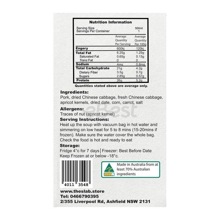 Free from MSG and preservatives, this soup is made with high-quality ingredients, resulting in a nourishing and flavorful broth. To enjoy, simply place the bag in hot water and heat for approximately 20 minutes.