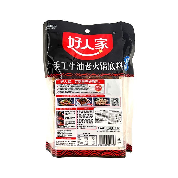 Good ingredients determine good taste. Good people's handmade butter old hot pot base has a mellow taste, spicy but not dry, fresh but not fishy, fresh and spicy, and has a long aftertaste. It can not only cook hot pot, but also cook chicken pot, red soup. Wait, there are many ways to eat, waiting for you to try!