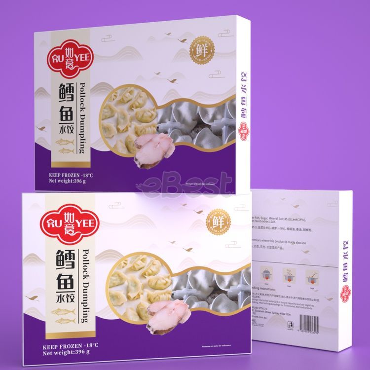 Ruyee Pollock dumplings are a type of frozen food that come in a 396g package. These dumplings are made with a savory filling of Pollock fish, which is a type of white fish that is commonly found in the North Pacific. The filling is wrapped in a delicate dumpling wrapper, which is made from a mixture of wheat flour and water.