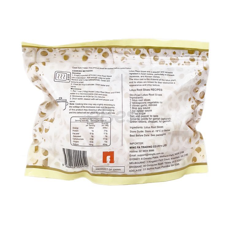 Frozen lotus root slices are a type of vegetable that is commonly used in Asian cuisine, particularly in Chinese and Japanese cooking. They are made from the roots of the lotus plant, which are sliced and then frozen to preserve their freshness.Frozen lotus root slices have a crunchy and slightly starchy texture, with a mild and slightly sweet taste. They are often used as a vegetable ingredient in stir-fries, soups, and hot pots, and pair well with a variety of other ingredients such as meats, seafood, and vegetables.【 Random packaging 】