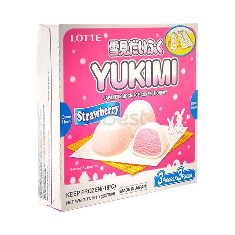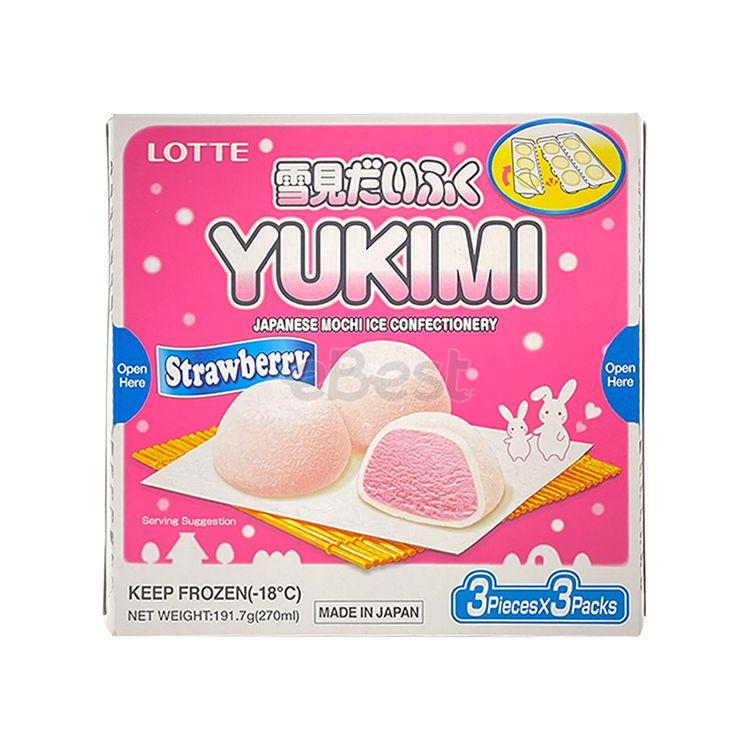 Lotte Yukimi Daifuku Strawberry Flavor is a delightful Japanese dessert consisting of mochi (glutinous rice cake) filled with sweet strawberry-flavored ice cream. Each pack contains 9 individually wrapped Yukimi Daifuku, making it convenient to enjoy this treat whenever you desire. The outer layer of the mochi is soft and chewy, while the creamy strawberry ice cream filling provides a burst of fruity sweetness. Lotte Yukimi Daifuku Strawberry Flavor is best enjoyed chilled and can be stored in the freezer for a refreshing and delightful dessert option. It is a popular choice among fans of Japanese sweets and those who appreciate the combination of mochi and ice cream.