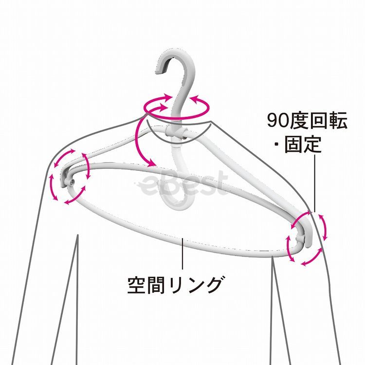 The bust space of the clothes is expanded three-dimensionally, and it is easy to dry even if it is dried indoors. Non-slip hooks prevent clothing from moving. By turning the space, the chest of the clothes can be opened three-dimensionally, and even thick clothes can be dried quickly. Because it is a folding hook, it can be dried without stretching the neck forcibly. When not in use, it folds down for compact storage.