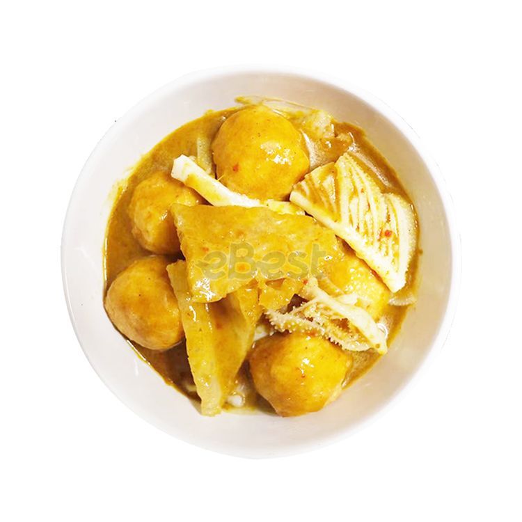 Curry fish balls, pig skin, and beef tripes are a traditional street food in Hong Kong. This product features a crispy texture with a rich curry sauce, making it a delicious and tempting dish.
