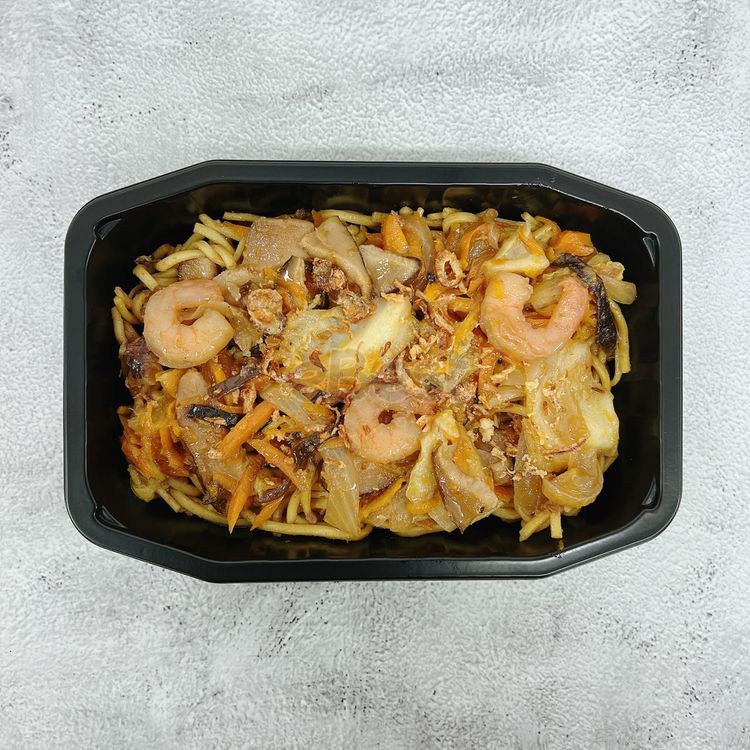 Using chewy noodles, fresh shrimp, and vegetables to recreate authentic Taiwanese-style stir-fried noodles. Cooked meal. When heating, please tear open a small opening in the package and microwave for 3-4 minutes.