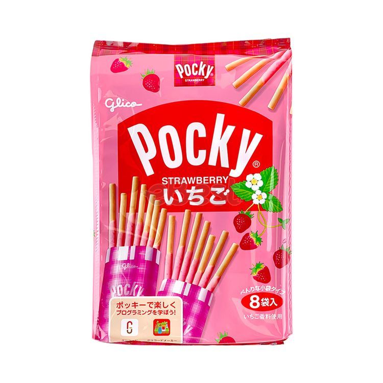 Glico Pocky Strawberry Flavor 8 packs is a Japanese snack that comes in a slender stick form, with a crunchy biscuit stick covered in a smooth and creamy strawberry-flavored coating. The 119g size is perfect for sharing or indulging in a single serving. The overall taste of the snack is a blend of sweetness, creaminess, and a hint of tanginess from the strawberry flavoring.