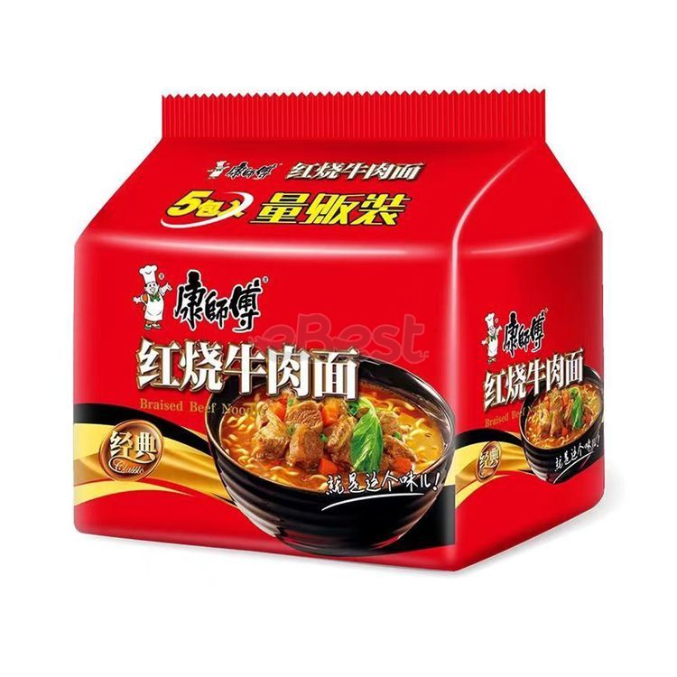 Classic flavor Rich and mellow soup Flexible and Strong Way Master Kong's Braised Beef Noodles 98g*5bag *4pack Asian Cuisine Dried & Fried Noodles