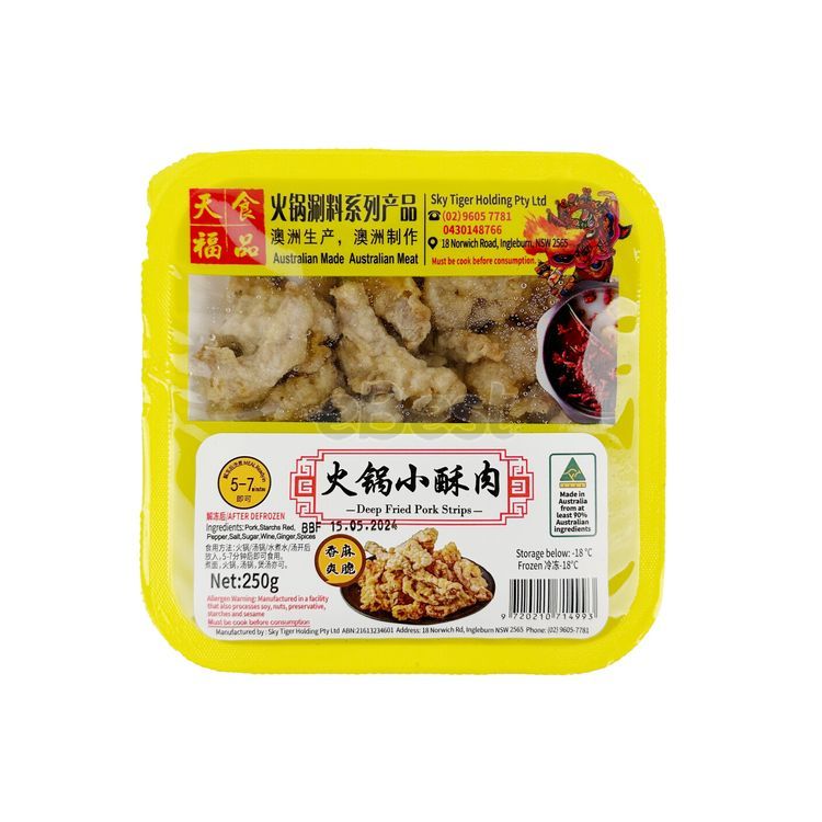 Hot pot small crispy meat, selected quality pork, crispy outside and tender inside, excellent taste. Each pack is 250g, the size is moderate, suitable for family dinners or small gatherings of friends. Simply add it to the hot pot and enjoy it in the hot pot. The crispy meat is a popular choice on the hot pot table to make your taste buds dance and enjoy the aftertaste.