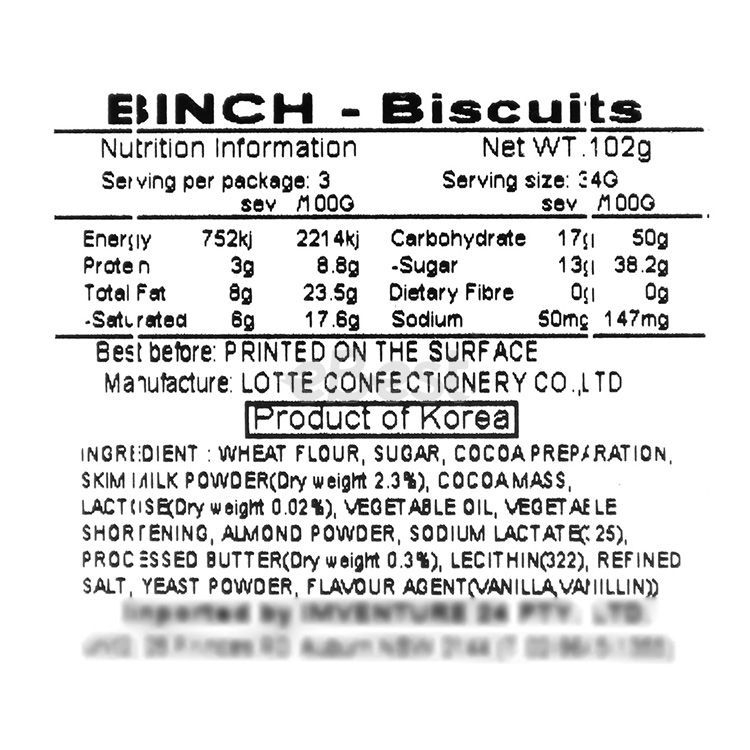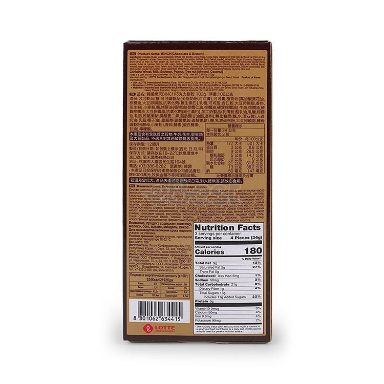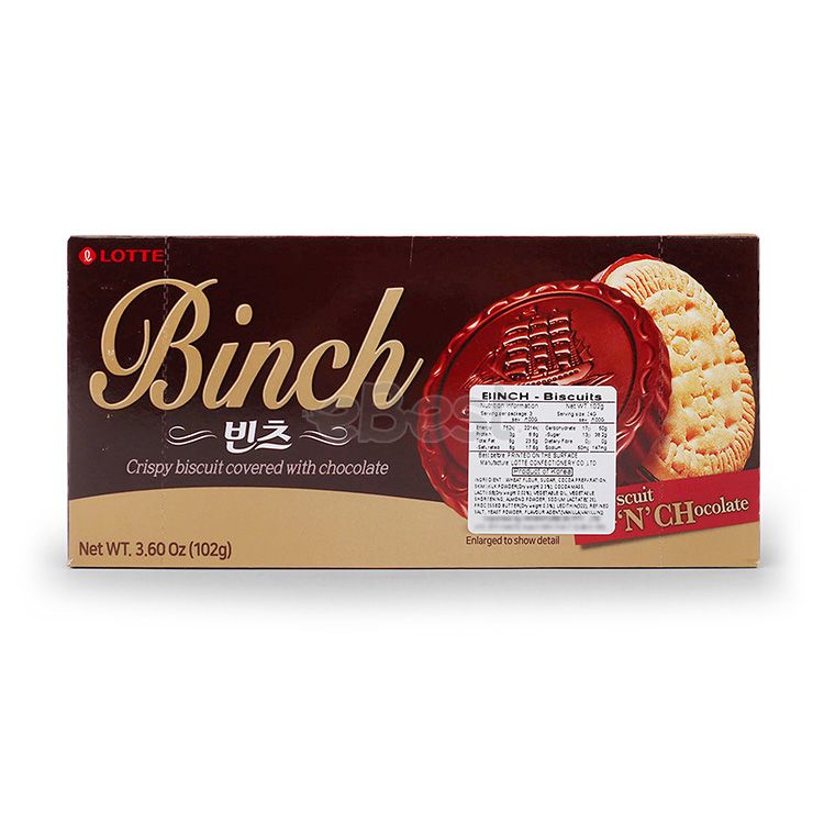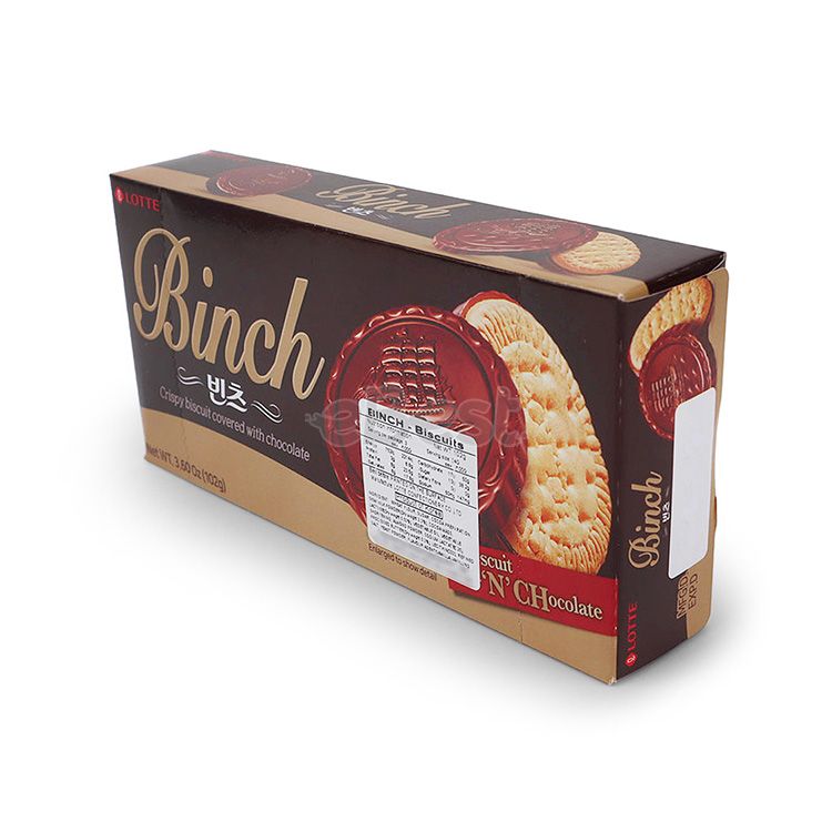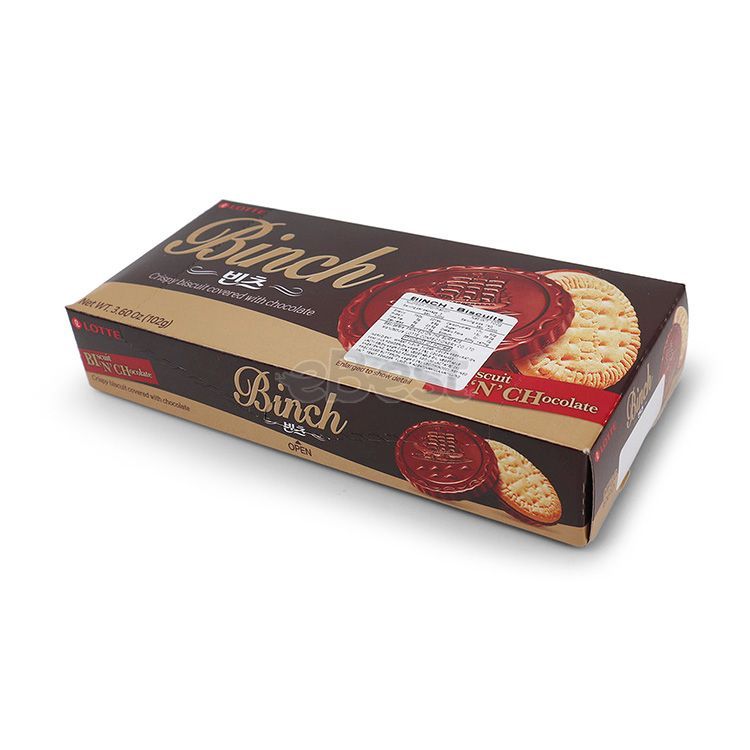 Lotte Binch Chocolate Biscuit, one of Korea's iconic biscuits, tantalises with its unique combination of half biscuit and half chocolate, delivering a delightful contrast of textures and flavours. This premium European-style cookie is individually wrapped for your convenience, making it a perfect accompaniment to your coffee or tea, or simply enjoyed on its own as a delightful indulgence.
