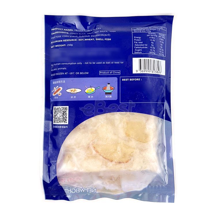 Real material, color and flavor, tender meat, refreshing and delicious, large pieces of conch meat, crisp and chewy.