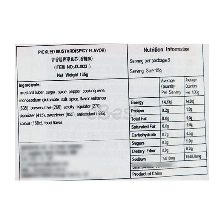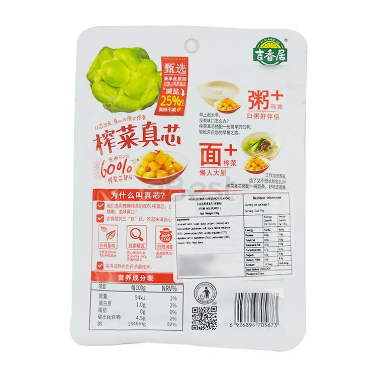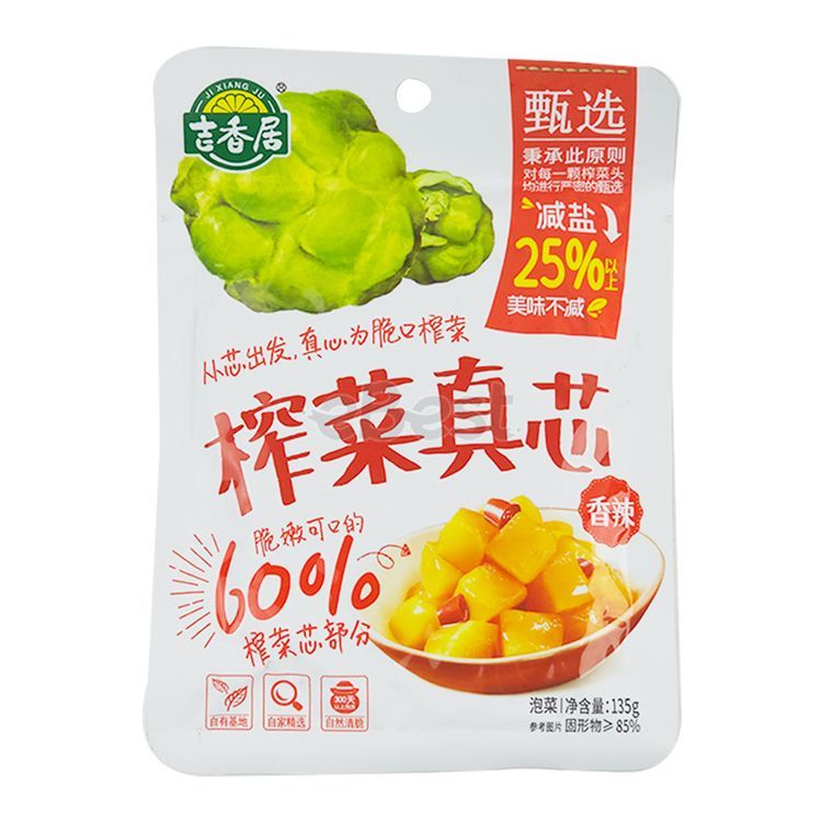 Select its own base of pickled cabbage head, select 60% tender core, salt reduction of more than 25% per 100 grams, sweet and good taste, with full of real core for your entrance smile!