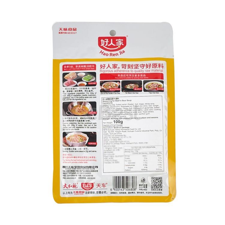 Hao Ren Jia Sour Soup Fat Beef Seasoning 100g 2-3 Servings