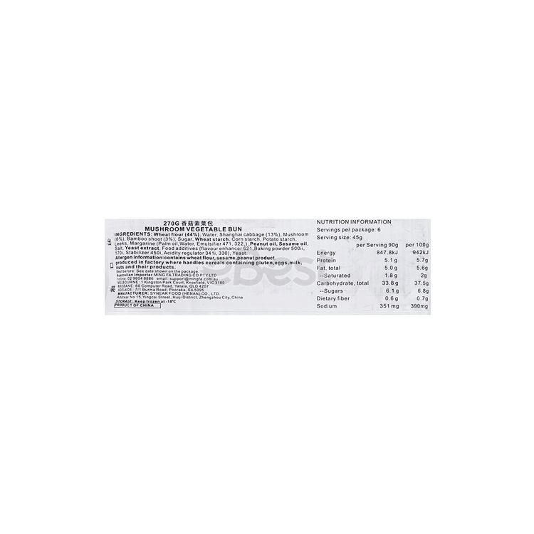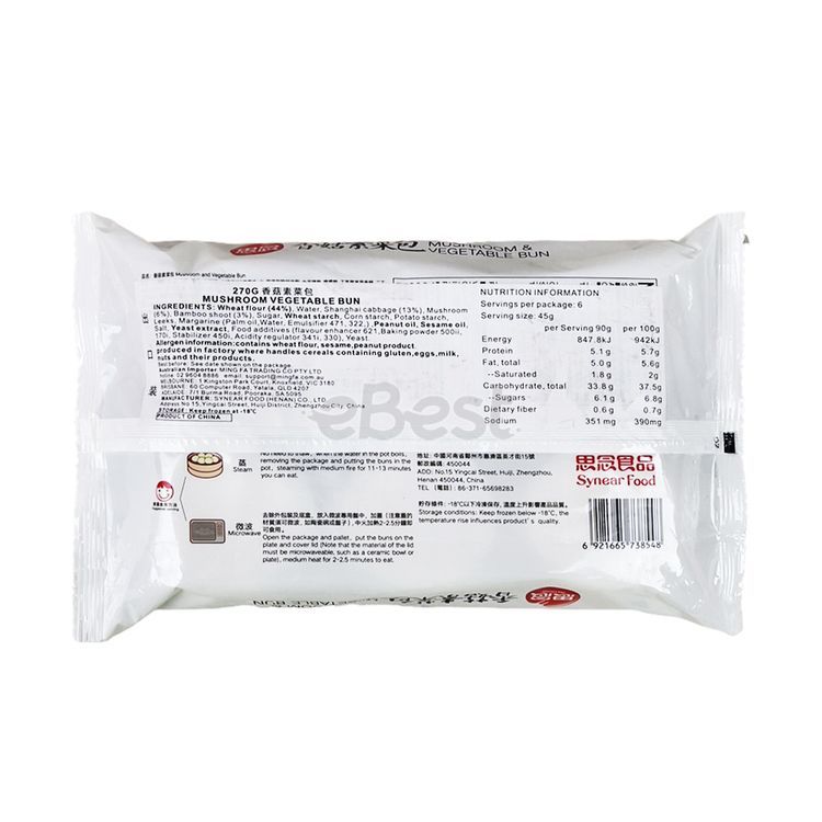 Synear Chinese Pastry Mushroom Vegetable Bun 270g 6pc Frozen