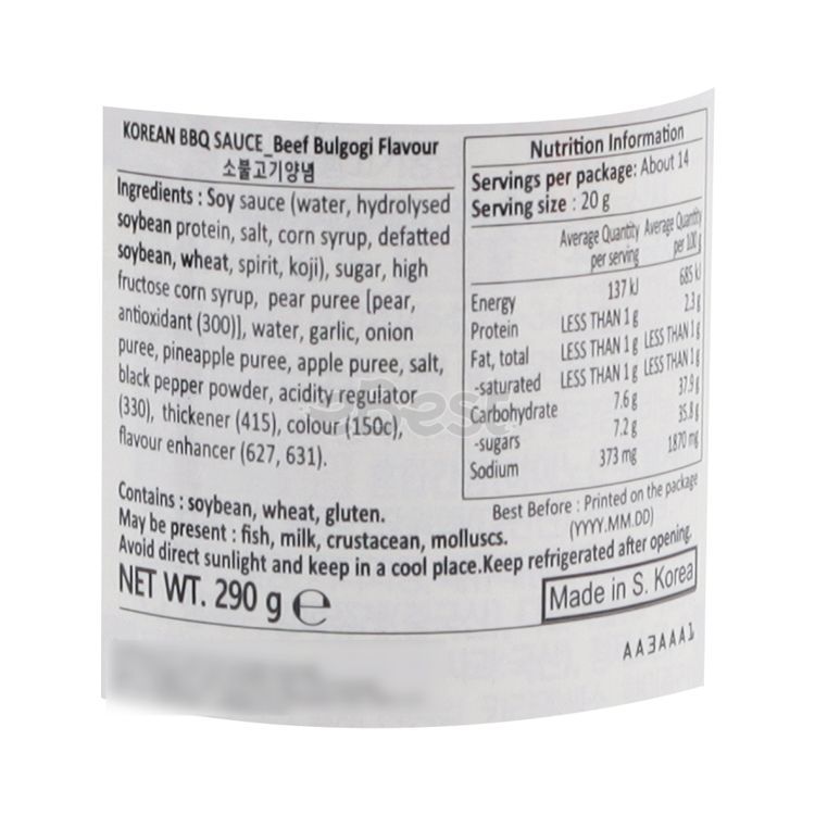 CJ Food Grilled Beef Bulgogi Korean BBQ Marinade 290g