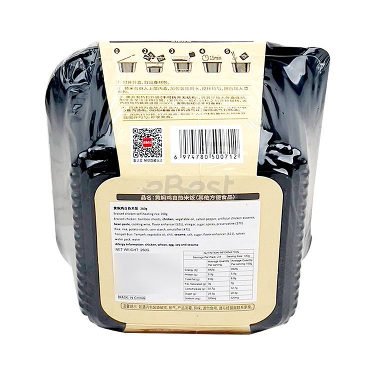 Self heating rice Braised chicken Convenient fast food Chicken taste is fresh and tender, braising soft waxy into the bone, thick and rich juice, long grain rice grain clear, add water to brew, 15 minutes to enjoy delicious.