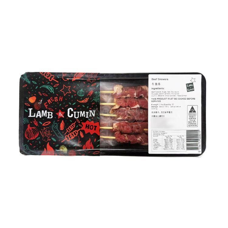 Lamb Cumin Marinated Beef Skewers 20pc Frozen