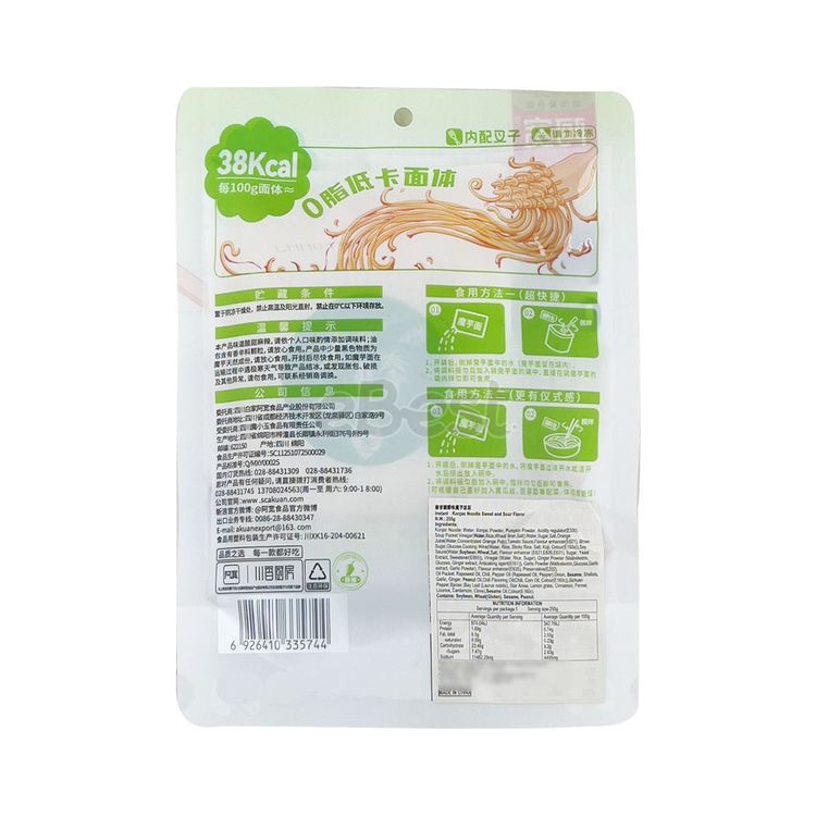 The taste is smooth and elastic, paired with pepper flavored sweet and sour seasonings, with a balanced sour and sweet taste and just the right amount of spiciness. Whether it's scorching summer or cold winter, it can bring you a refreshing taste and wonderful flavor. Akuan pepper flavored sweet and sour konjac cold noodles allow you to easily enjoy healthy and delicious low calorie meals.