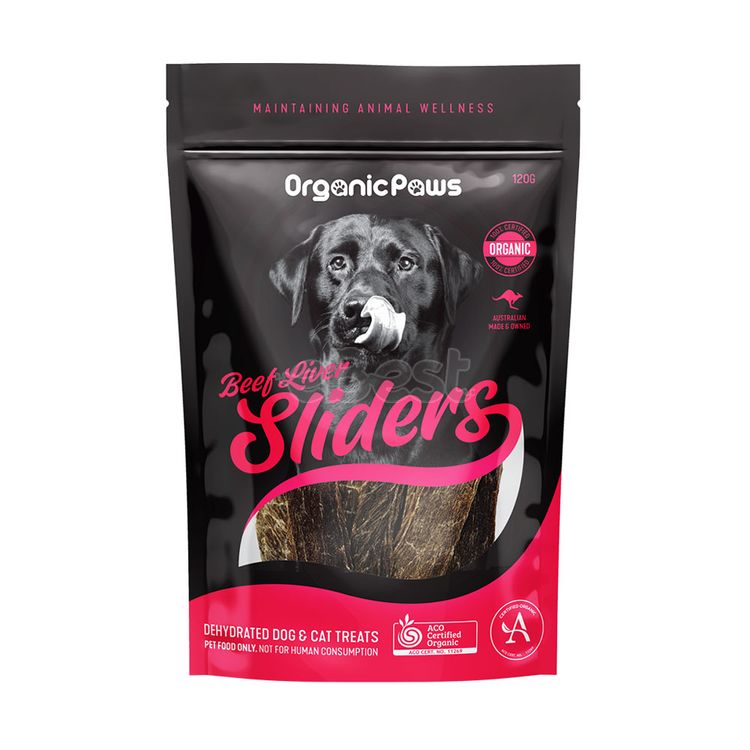 Sliders are a high quality dehydrated treat for your dog or cat made with Certified Organic lean prime strips of meat and organ varieties with no preservatives, colours or chemicals added.