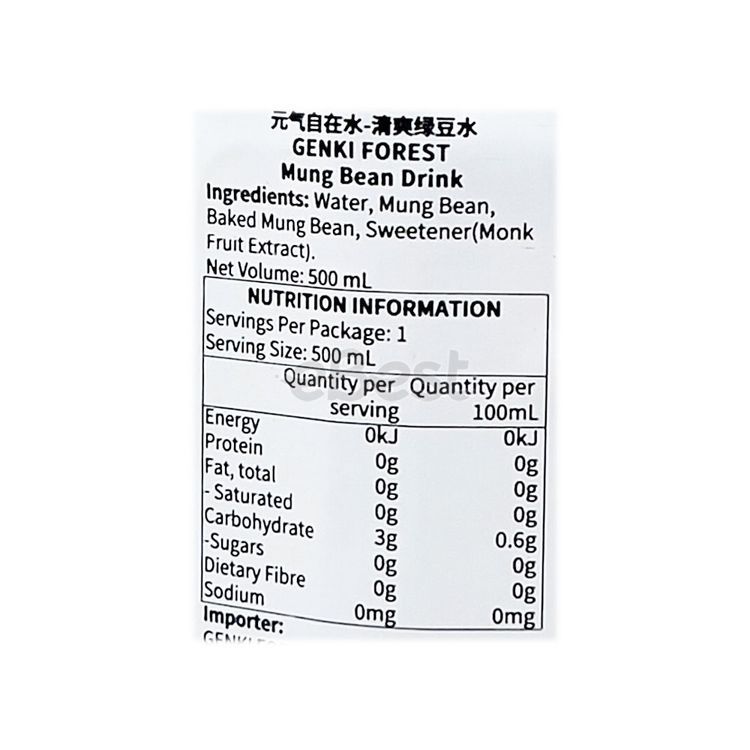 Genki Forest Genki Zizai Water– Refreshing Green Bean Water, 0 Sugar, 0 Fat, 500ml