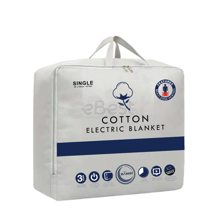 Bambi Cotton Electric Blanket with Nine Temperature Zones Control– Multiple Sizes Available, Same as Harvey Norman Model