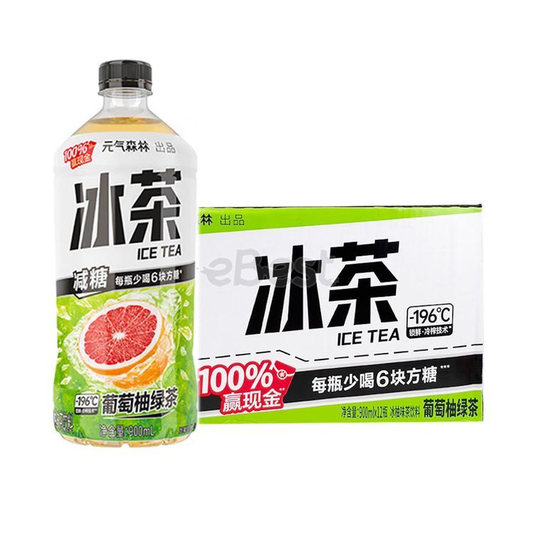 Whole BoxYuanqi Forest Reduced Sugar Ice Tea Grapefruit Green Tea Flavour 900ml*12