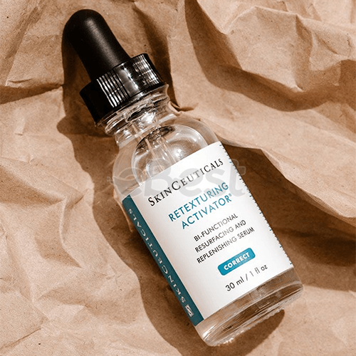 Dual action exfoliating serum removes dead surface skin cells to visibly reduce fine lines, hyperpigmentation and blemishes. It also works to hydrate and reinforce the skin’s moisture barrier with hyaluronic acid. Combining these two key mechanisms – exfoliating and hydrating – encourages optimal skin cell renewal. Scientific tests have found SkinCeuticals® Retexturing Activator Serum provides higher results than that of 20% glycolic acid treatment applied daily. An oil free serum, Retexturing Activator is a replenishing, resurfacing and exfoliating serum that helps stimulate new cell turnover and reinforces the skin’s moisture barrier for healthier, more radiant looking skin.