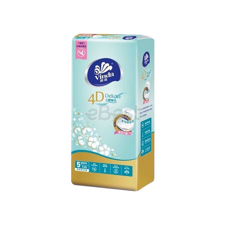 Vinda 4D Three-Dimensional Printed Light Fragrance 3-Layer Soft Tissue M Size 100 Sheets/Pack*5