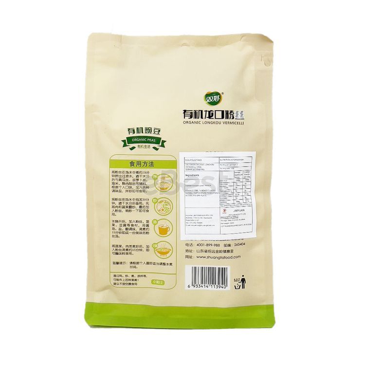 Selected high-quality peas are used as raw materials, and starch is extracted using the acid slurry process. It is handmade and meticulously crafted. The vermicelli strips are fine and uniform, with high smoothness, strong transparency, and a tough and soft texture. Can be used for cold dishes, stir frying, with a clear and tender taste, smooth and chewy, and unique flavor.