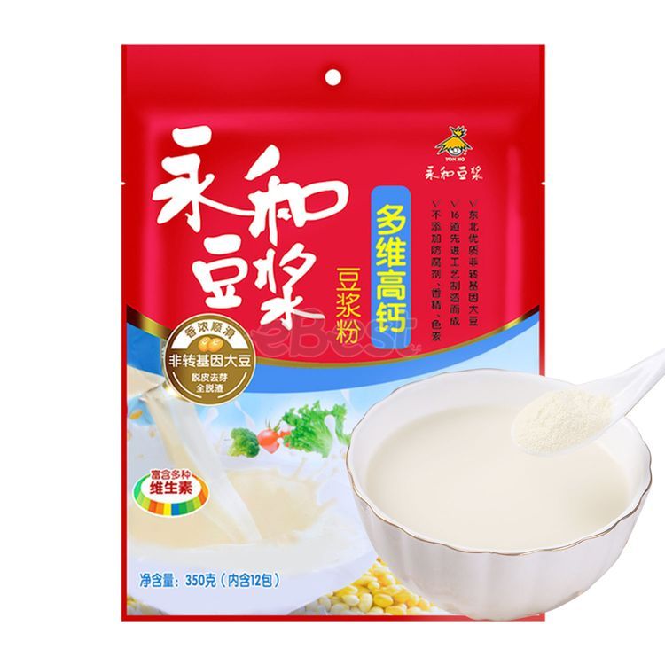 Yonghe multi-dimensional high-calcium soy milk, instant ready-to-drink soy milk, fragrant, smooth, slag-free, suitable for hot and cold water, specially designed for women, selected soybeans, easy to brew without caking. Dosage: Add 180 ml of hot water (about 80 degrees), add an appropriate amount of soy milk powder, add soy milk powder while stirring, stir well and serve.