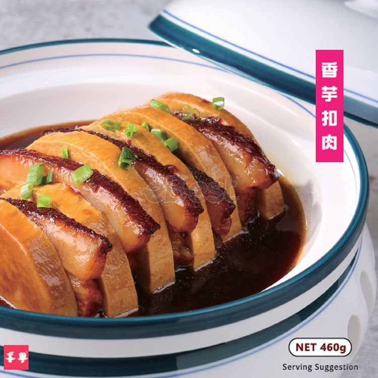 Taro braised pork belly is a classic Cantonese dish with good color, aroma and flavor. Selected pork belly is first boiled until it is cooked through, then fried until golden and crispy, and then arranged alternately with soft, glutinous and sweet Lipu taro, drizzled with secret sauce, and slowly steamed until the meat is crispy and the taro is rotten. The two penetrate each other and have distinct taste layers. The finished product is bright red and attractive, fat but not greasy, with rich taro fragrance, and melts in the mouth. It is an indispensable delicacy for holiday family banquets.