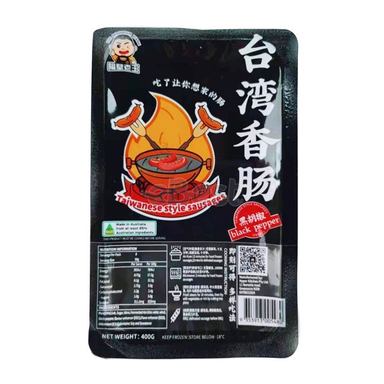 Super Kitchen Neighbor Lao Wang Taiwan Sausage Black Pepper 400g (6 pcs) Frozen