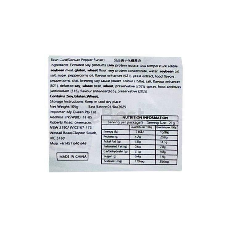 Selected high-quality ingredients, restoring the true meaty texture, with a tight and chewy taste, unique Sichuan peppercorn flavor and numbing aroma, making people linger and forget to leave. Rich in protein and nutrients, it is a healthy and delicious snack choice, satisfying both cravings and sharing.
