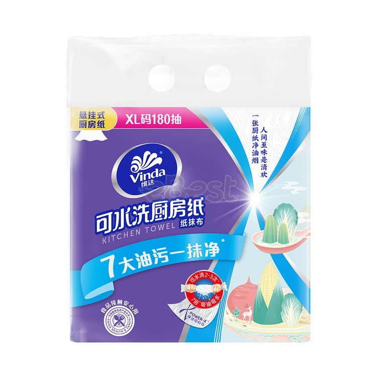 Vinda Hanging & Washable Kitchen Paper Towels XL (180 Sheets/Pack) (Buy 3 Packs, Get 1 Hook Free)