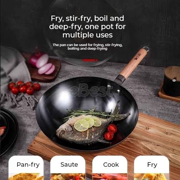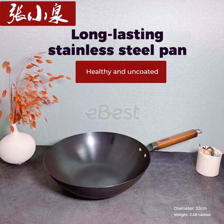 Zhang Xiao Quan “Jiu” Stainless Iron Wok – Uncoated Traditional Stir Fry Pan, Round Bottom, Induction & Gas Compatible